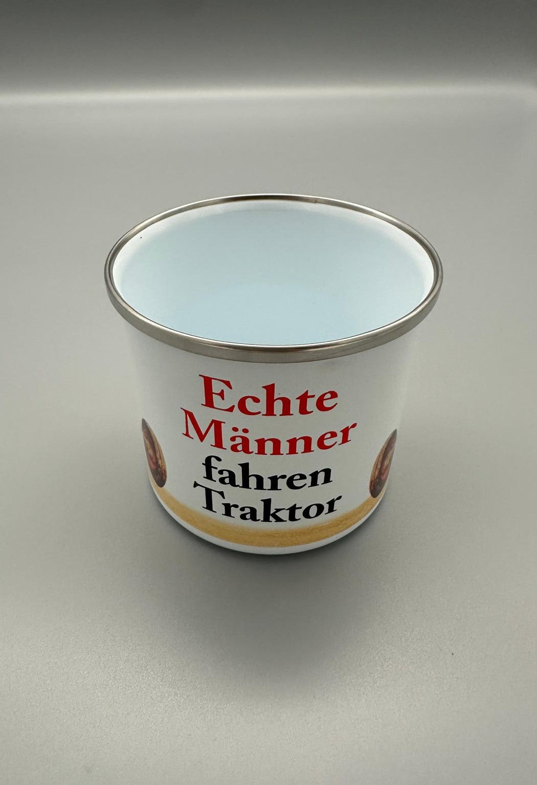 Robuster Emaillebecher mit dem Spruch „Echte Männer fahren Traktor“ – ideal für Hof, Werkstatt oder unterwegs. Leicht, bruchsicher und mit klassischem Retro-Charme. Perfekt für Kaffee, Tee oder den ersten Schluck am Morgen auf dem Traktor.
