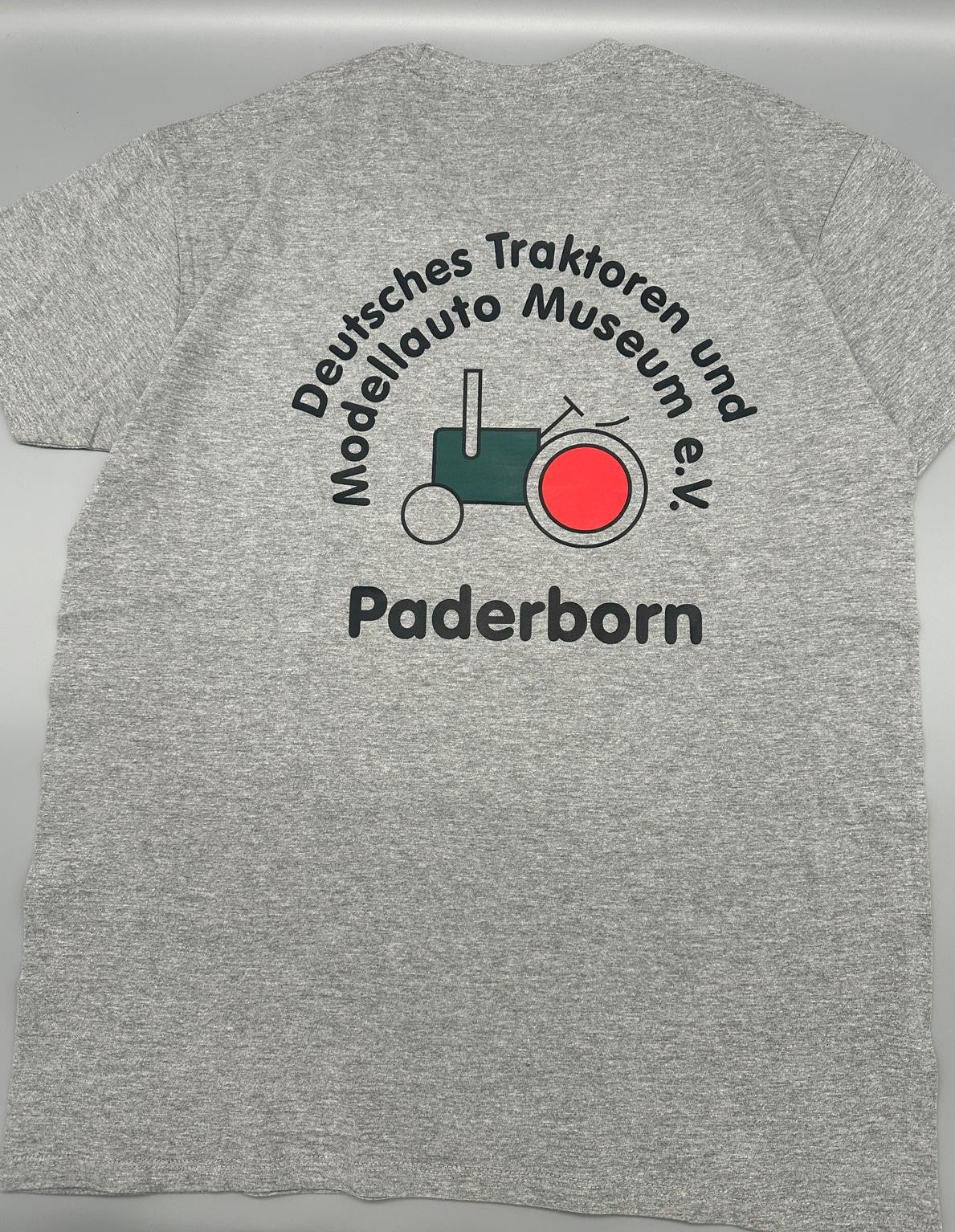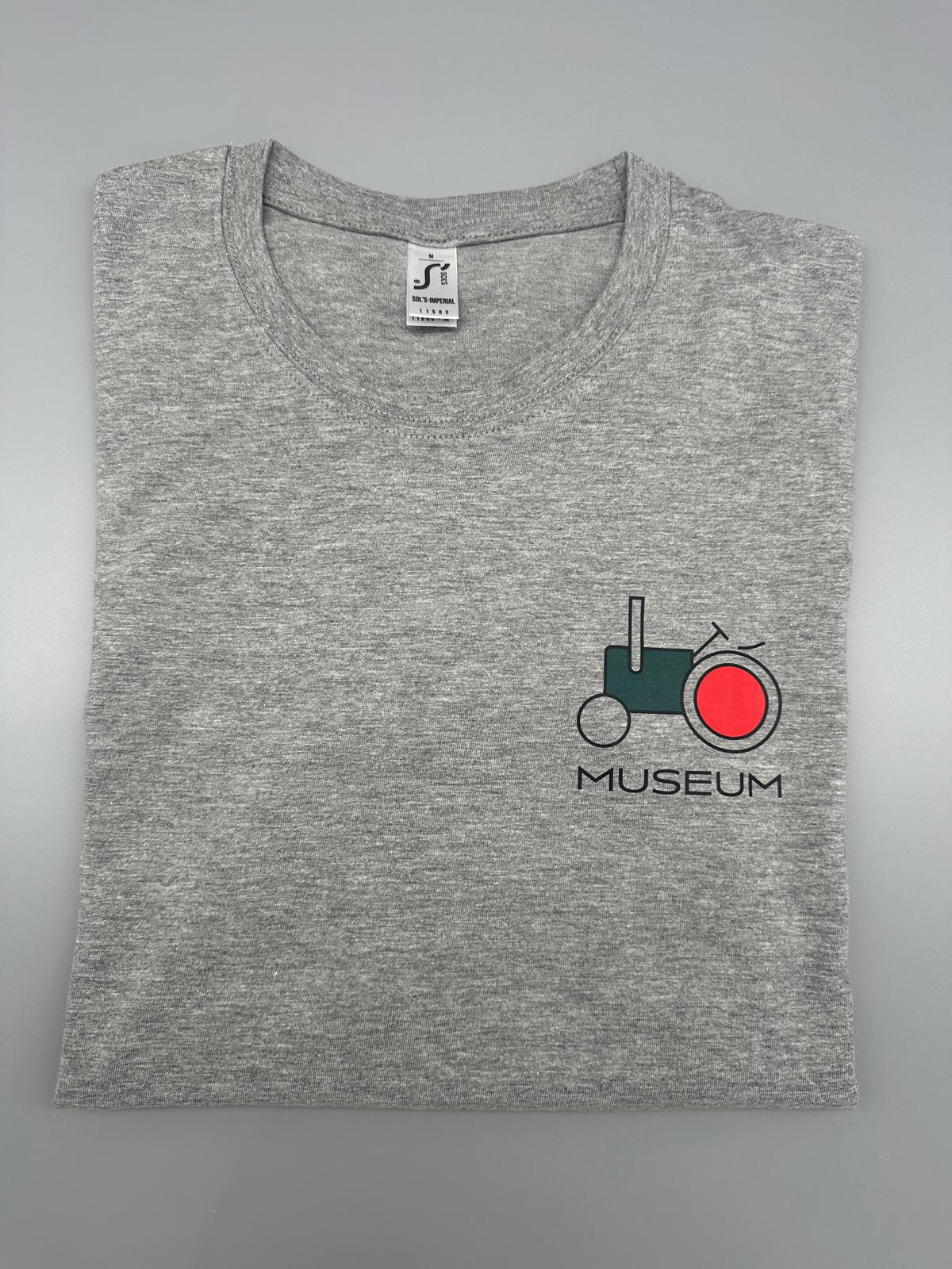 Offizielles Traktorenmuseum T-Shirt in Grau mit dem Museumslogo. Hochwertiges Baumwollshirt, bequem und langlebig – ideal für Besucher, Traktorfans oder als Souvenir aus dem Museum.